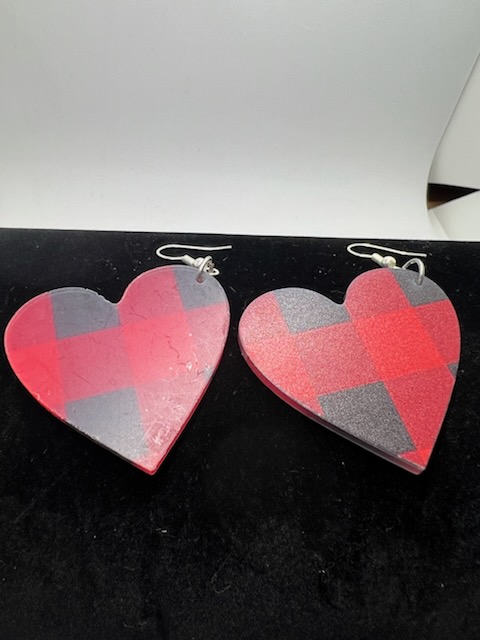 Resin buffalo plaid heart earrings for rustic style.