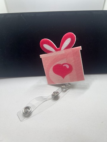 This adorable bunny heart gift badge reel is perfect for Valentine’s Day or Easter. Made of felt and plastic, it adds a touch of fun to your work attire. Great for nurses, teachers, or anyone who wears a badge.