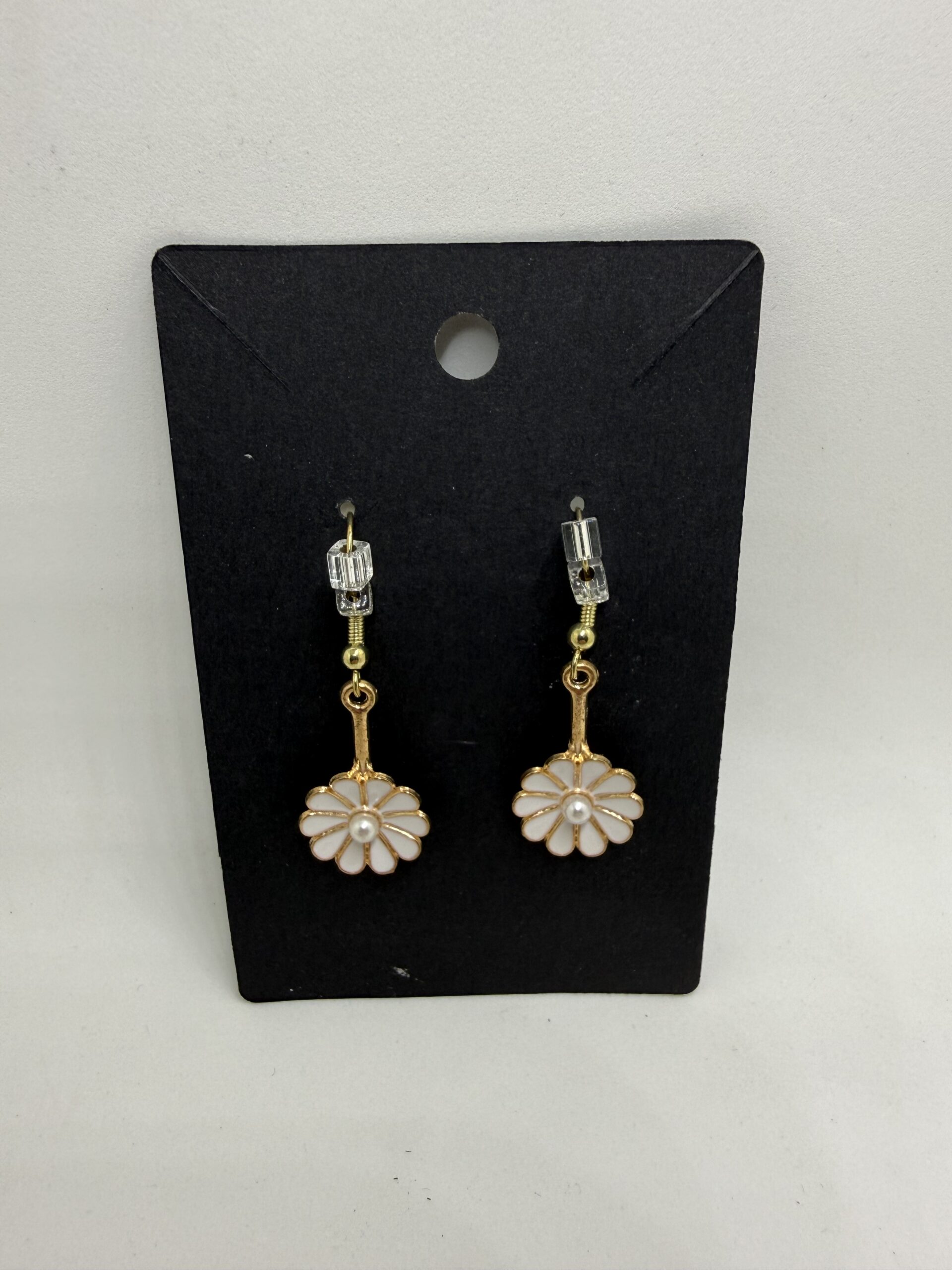 These charming daisy pearl drop earrings feature a delicate flower design with a lustrous pearl center. Crafted with gold-plated metal, they add a touch of elegance to any outfit. Wear them to a garden party or a casual brunch for a subtly stylish look.