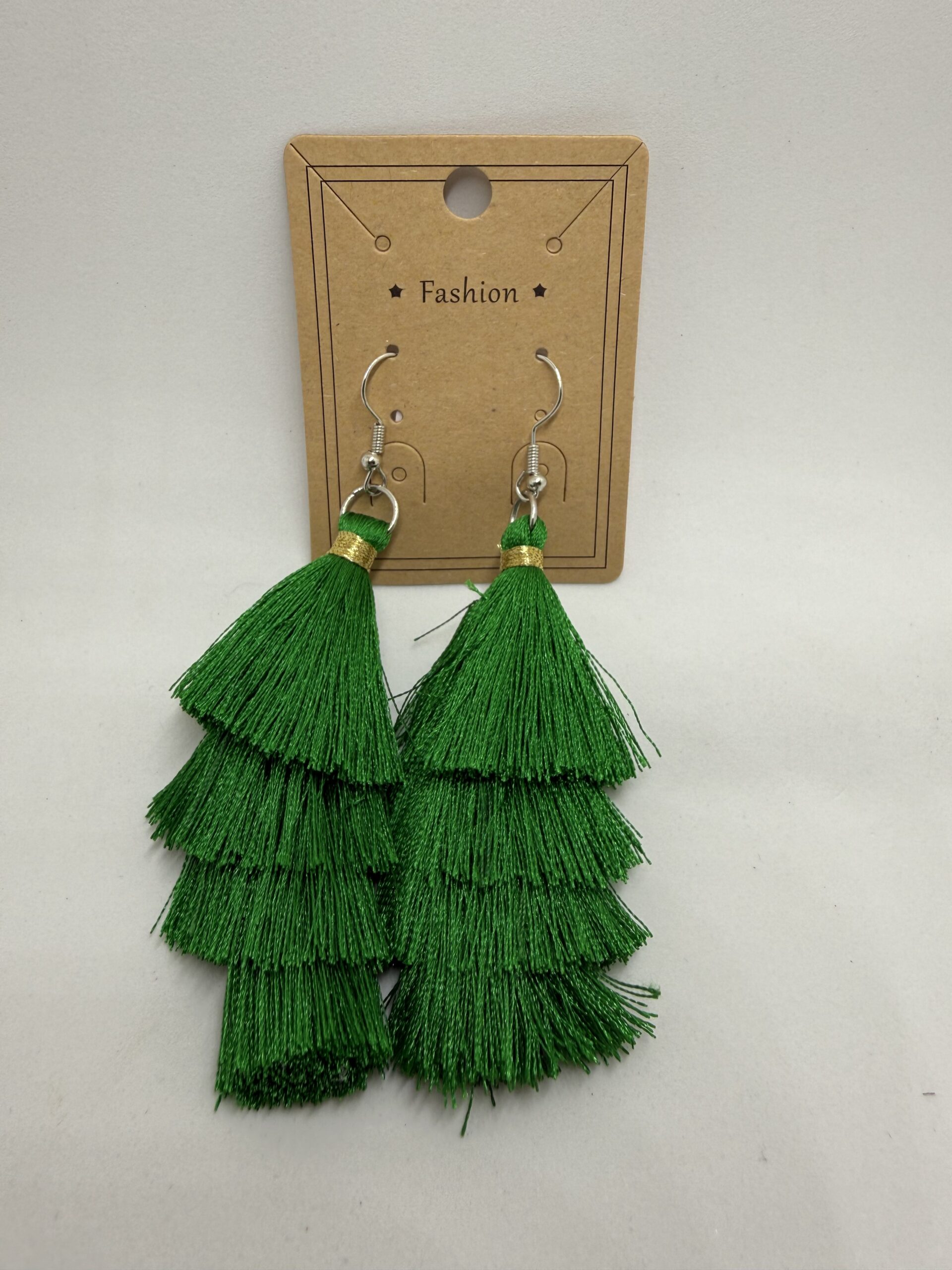 These vibrant emerald green tassel earrings add a pop of color and bohemian flair to any outfit. Made with soft, high-quality threads and gold-tone accents, they are lightweight and comfortable to wear. Perfect for dressing up a casual look or adding a statement piece to evening wear.