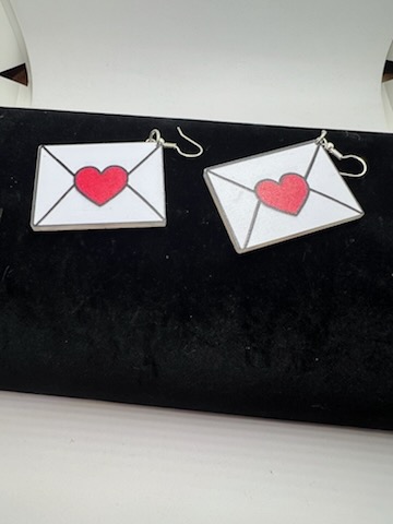 Cute envelope earrings with a heart for Valentine’s Day.