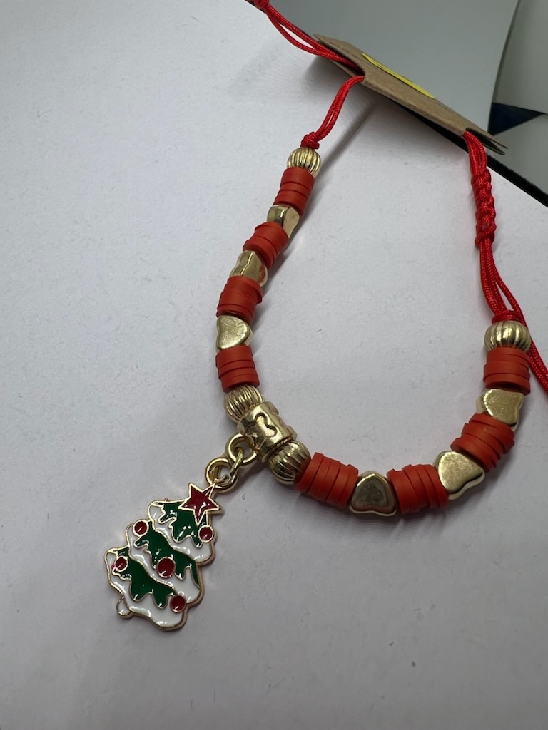 This adorable Christmas tree charm bracelet brings holiday cheer to any outfit. Made with red and gold plated beads and a detailed enamel Christmas tree charm, this bracelet is perfect for adding a touch of festive sparkle to your holiday gatherings. Wear it to your next Christmas party or give it as a thoughtful gift.