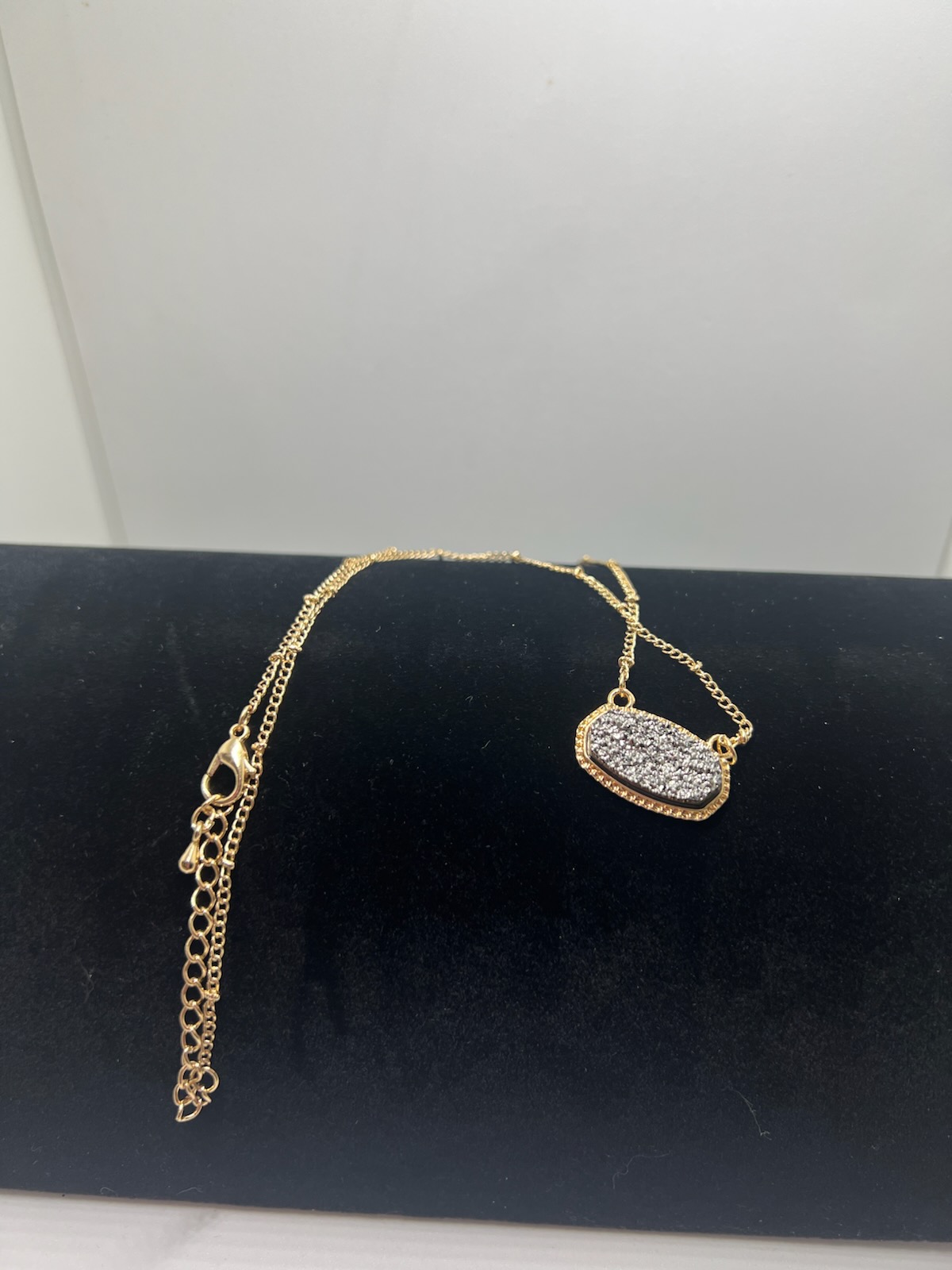 This beautiful necklace features a gold chain and a druzy pendant that sparkles in the light. Made with high-quality materials, this necklace is perfect for adding a touch of elegance to any outfit. Wear it to a party or dress it down for everyday wear.