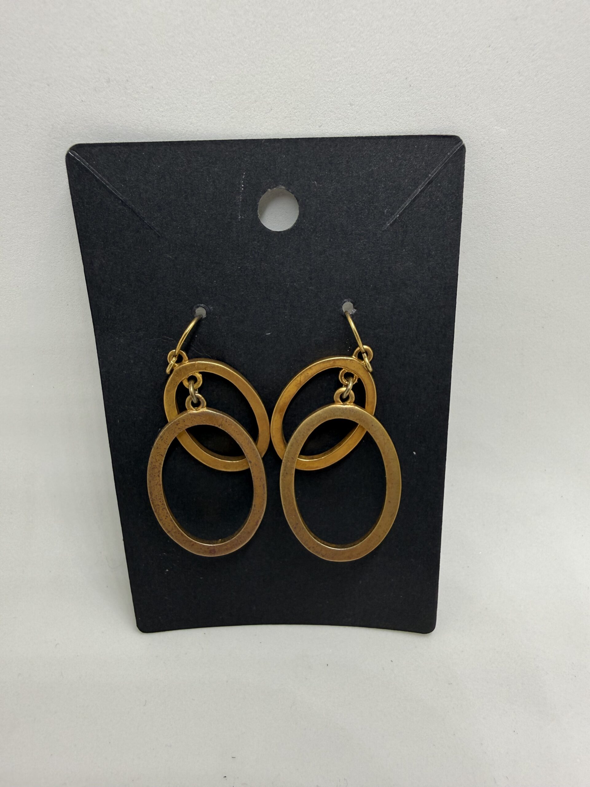 These gold interlocking oval drop earrings offer a minimalist and chic look. Crafted from durable metal, they are perfect for adding a touch of elegance to any outfit. Wear them to a casual brunch or a sophisticated evening event.