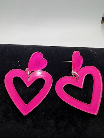 Hot pink acrylic heart earrings for a fun, flirty look.