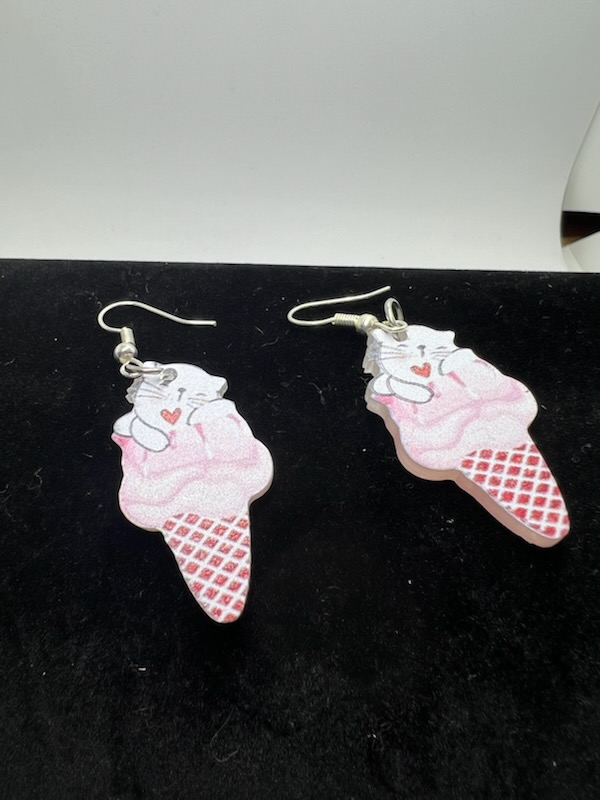 Cute kitty cat ice cream cone earrings for a touch of fun.