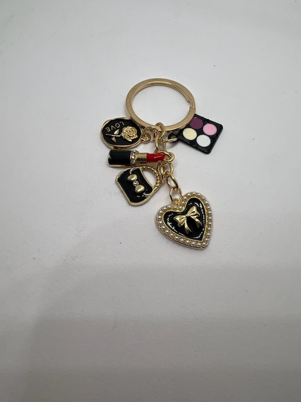 This cute keychain features makeup and accessory charms. The metal and enamel construction provides durability. Attach it to your purse or keys for a touch of style.