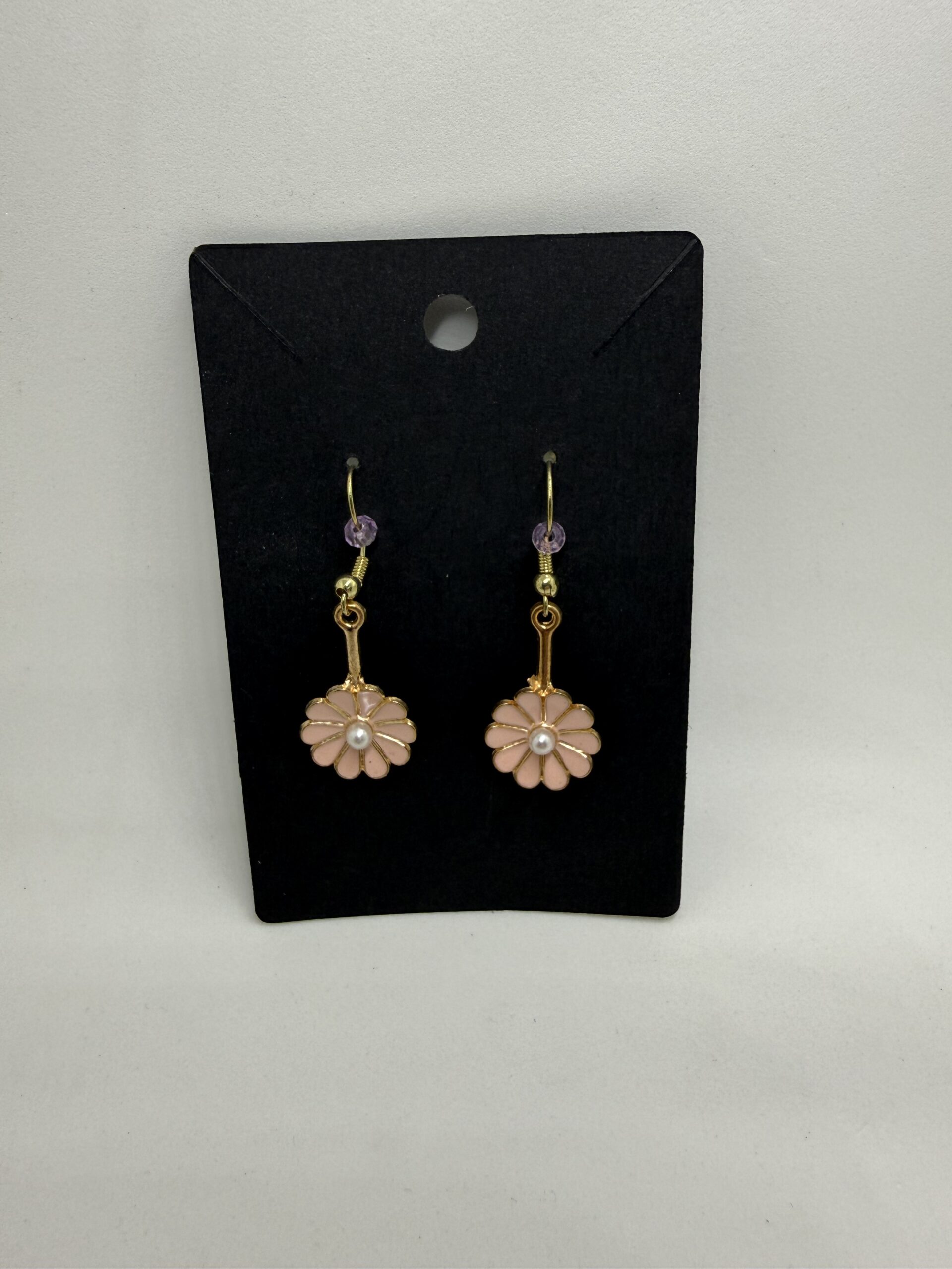 These beautiful pink flower earrings are the perfect accessory for any outfit. Made with gold-plated metal and a faux pearl center, they are lightweight and comfortable to wear. Wear them to a party, wedding, or just for fun!