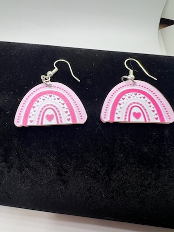 These charming earrings feature a pink rainbow design with a heart accent, perfect for adding a touch of whimsy to any outfit. Made of lightweight material, they’re comfortable for all-day wear. Wear these earrings to show off your playful side and love for unique accessories.