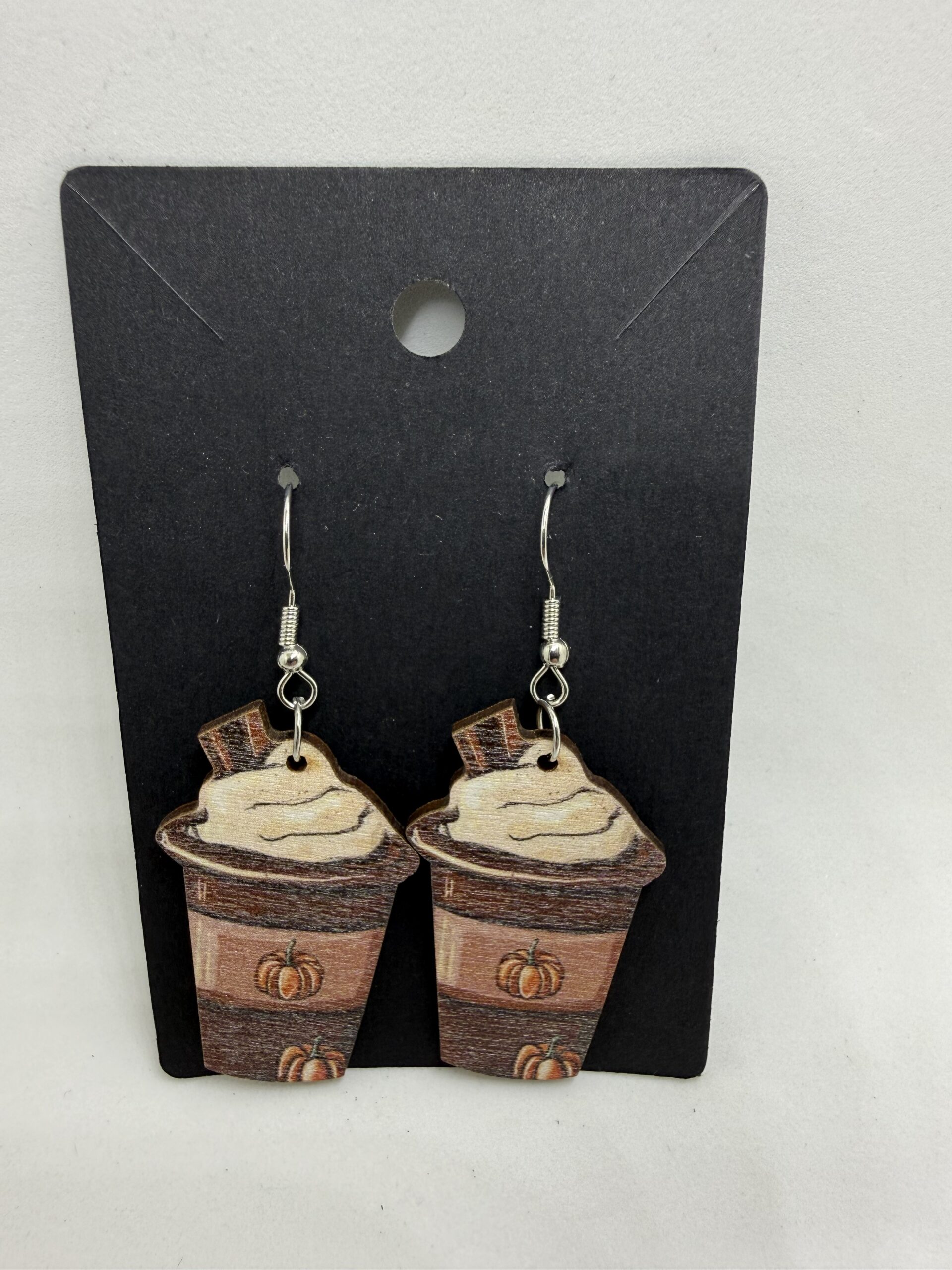 Pumpkin spice latte earrings, lightweight wood, fall accessory.