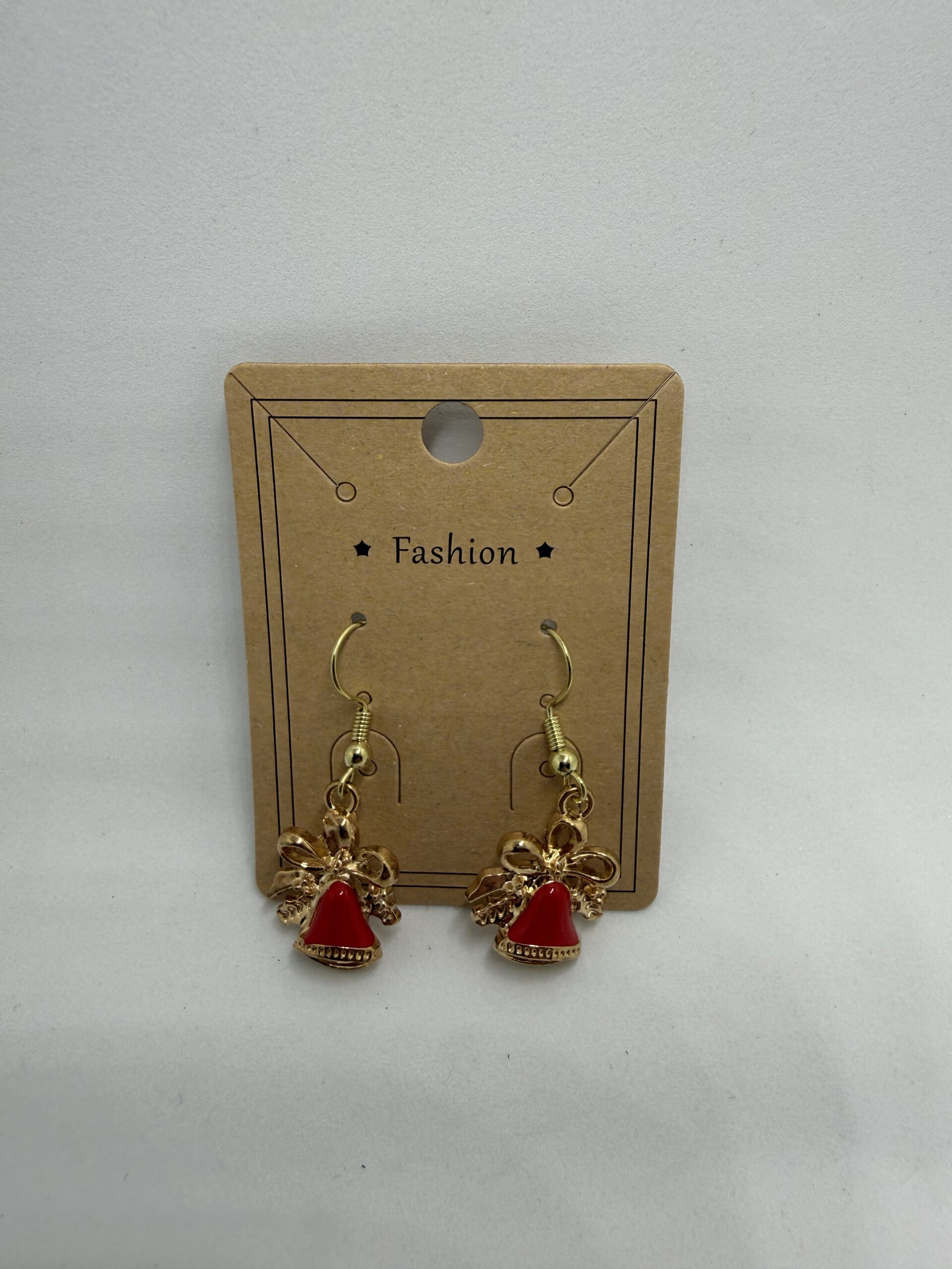These festive earrings feature a red bell design with gold accents, perfect for adding holiday cheer to any outfit. Made of durable metal, they are ideal for holiday parties or everyday wear during the Christmas season. The earrings are lightweight and comfortable.
