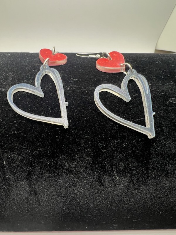 Express your love with these charming heart drop earrings. Made with lightweight acrylic, these earrings feature a red heart stud and a silver outline heart drop. Perfect for adding a touch of romance to any outfit.