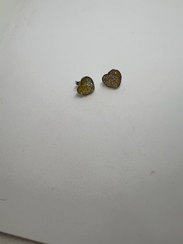 These adorable heart-shaped stud earrings add a touch of sparkle to any outfit. Made with high-quality, glittery material, they are perfect for everyday wear or a special occasion. Wear them to add a pop of fun to your work attire or dress them up for a night out.